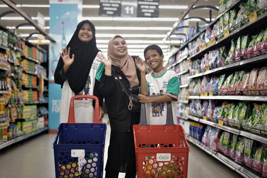 Kebahagiaan anak-anak yatim saat berbelanja kebutuhan sehari-hari.