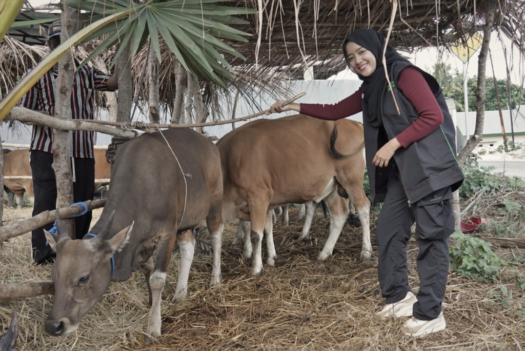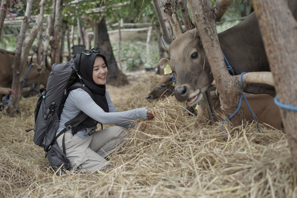 “Seru banget! Ini pertama kali buat aku mendapatkan pengalaman merawat sapi-sapinya, kasih makan sambil interaksi. Paman Kasim juga jelasin tentang kesehatan sapi dan aku juga ikut ukur bobot sapi. Yang menarik itu kita ukur pakai tali yang diikat pada batang kayu, jadi kita bisa ukur dari jarak jauh, menjaga tetap aman dari resiko amukan sapi juga. Setelah itu kita ukur dengan meteran dan kita hitung, jika hitungannya sesuai maka sapi ditandai dengan cat semprot sebagai tanda lolos QC dan siap dikurbankan,” papar Ocha.